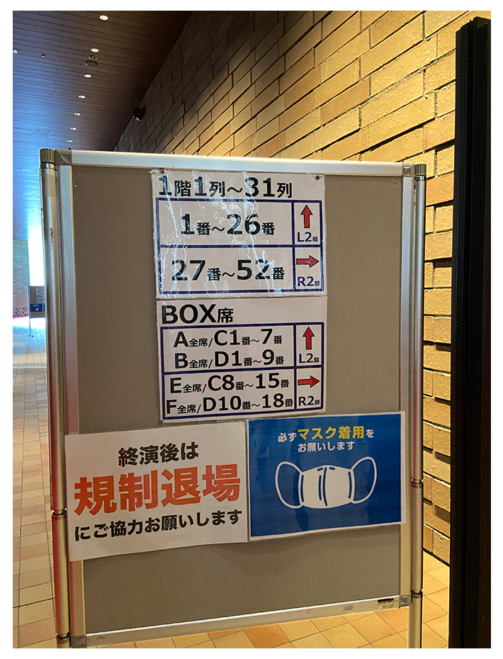 17時45分、場内アナウンスがはじまると同時に、フェイスシールドを持ったスタッフが場内を回っていた。最近の会場では、このパターンが結構見受けられる。