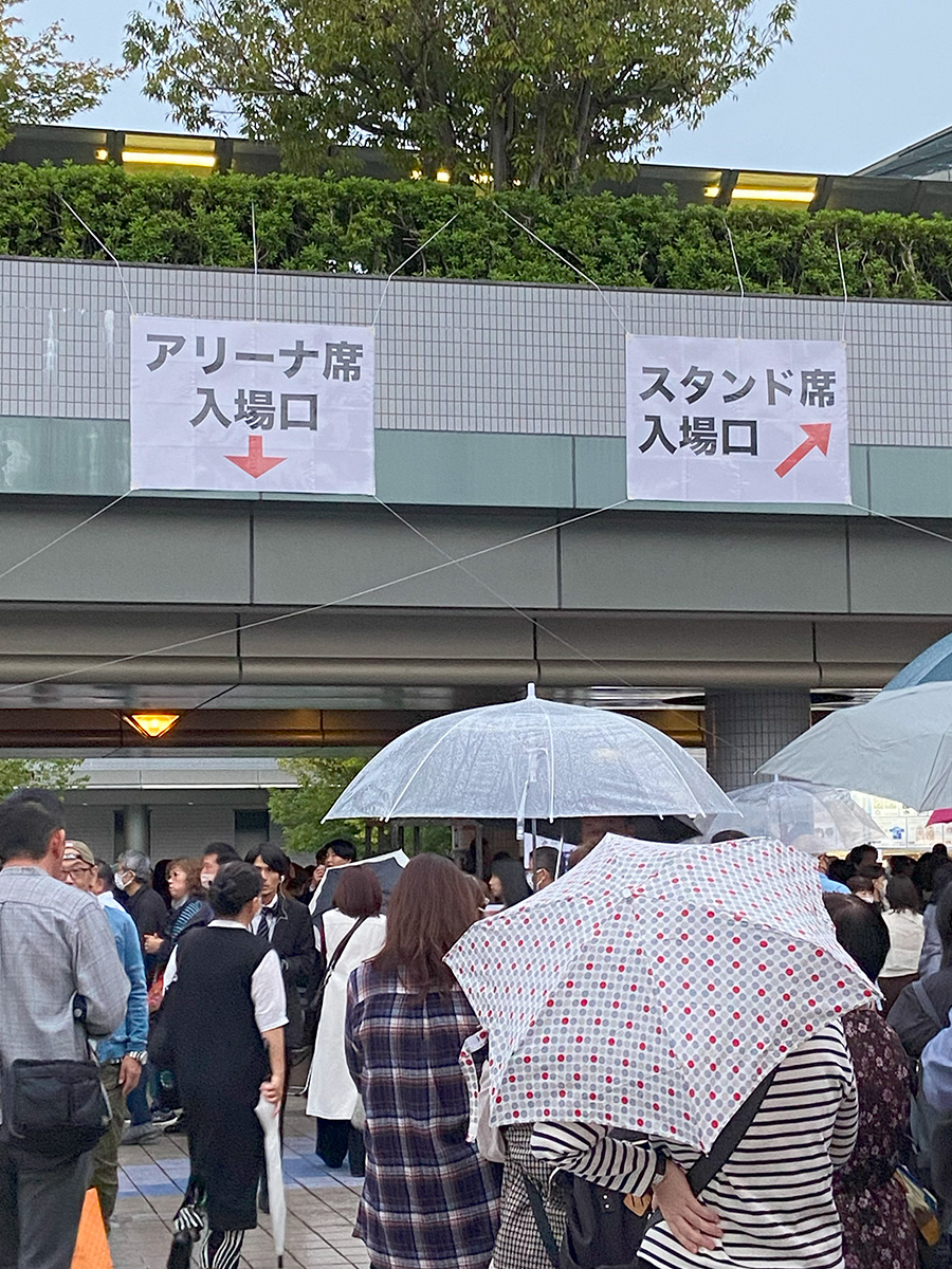 ここから自席のアリーナ北へ行くのに、会場内の階段から降りてベース浜崎賢太よりの中盤ぐらいの席についた。