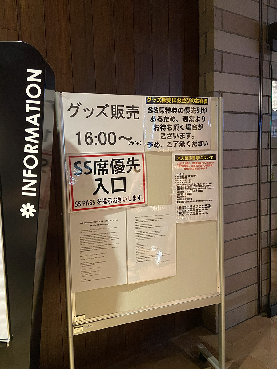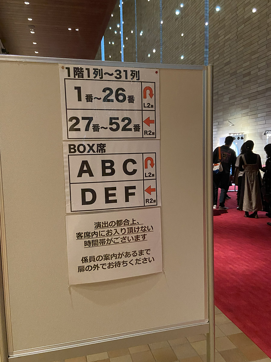 本日は友人が確保してくれた席で、確認しに行ったところSS席みたいなS席だった。私自身宇宙図書館ツアーが開催された2018年以来、実に8年ぶりに訪れる会場であった。まじまじと後方を見ると割と狭く感じられたが、4階席があるのは圧迫感を感じた。