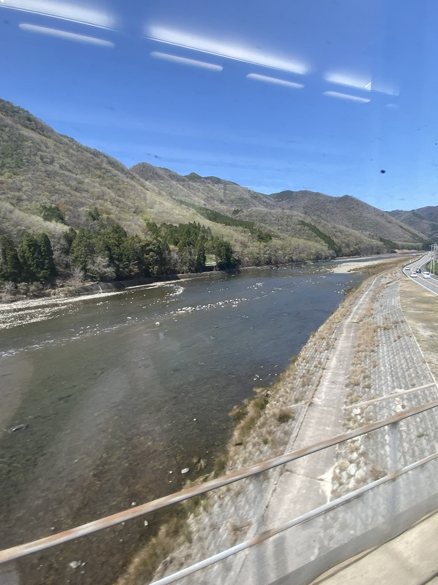 9時44分JR三ノ宮駅を出発し明石海峡大橋を左に見て、佐用駅手前の10時55分ごろに写真の川を見た。山間を走る電車から見る景色、自分がどれだけ小っぽけなのかがわかった。