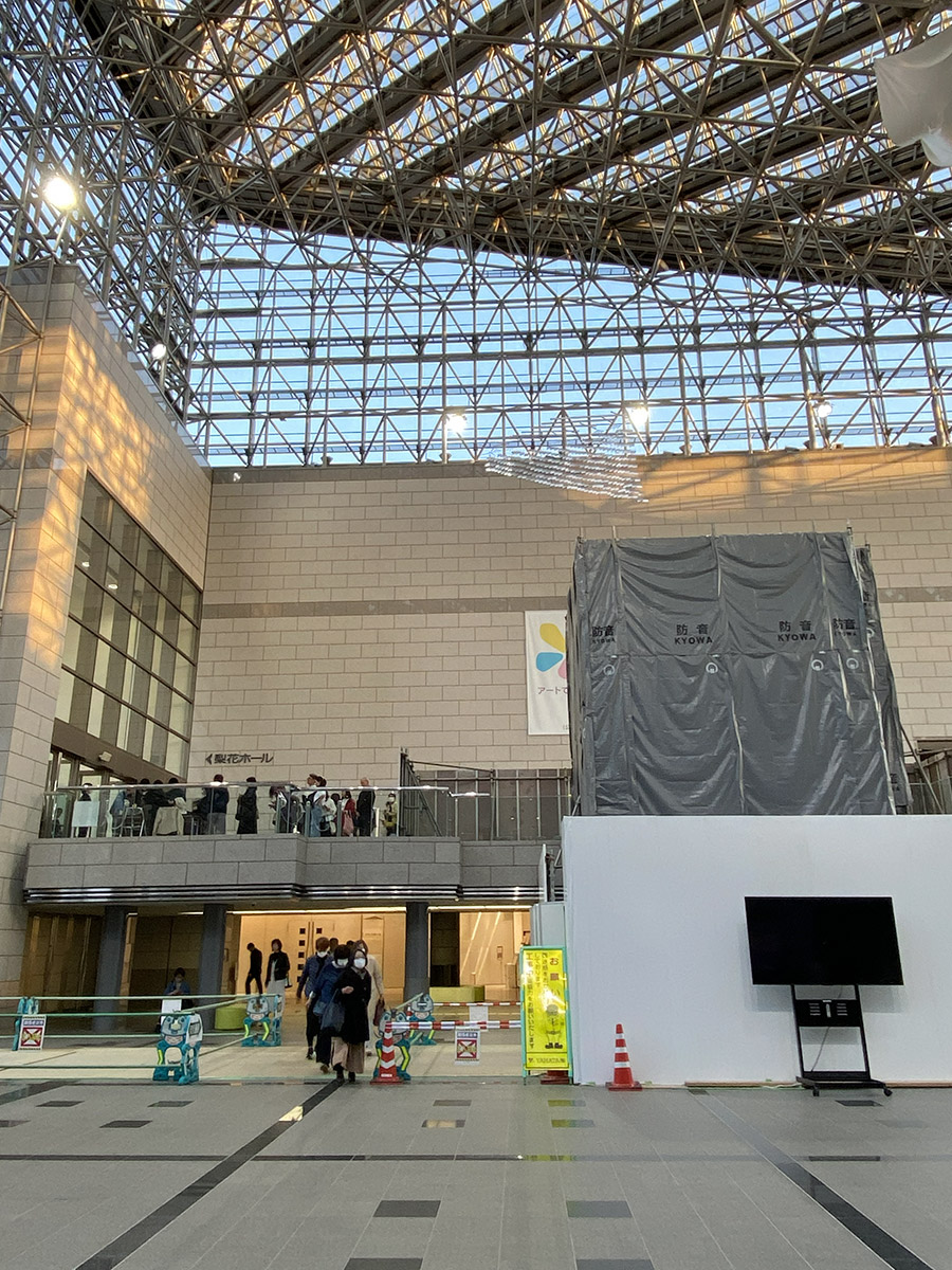 会場に向かう車から見える川べりには、梅が咲いているような感じだった。ロームシアター京都に着いたのは17時20分頃。