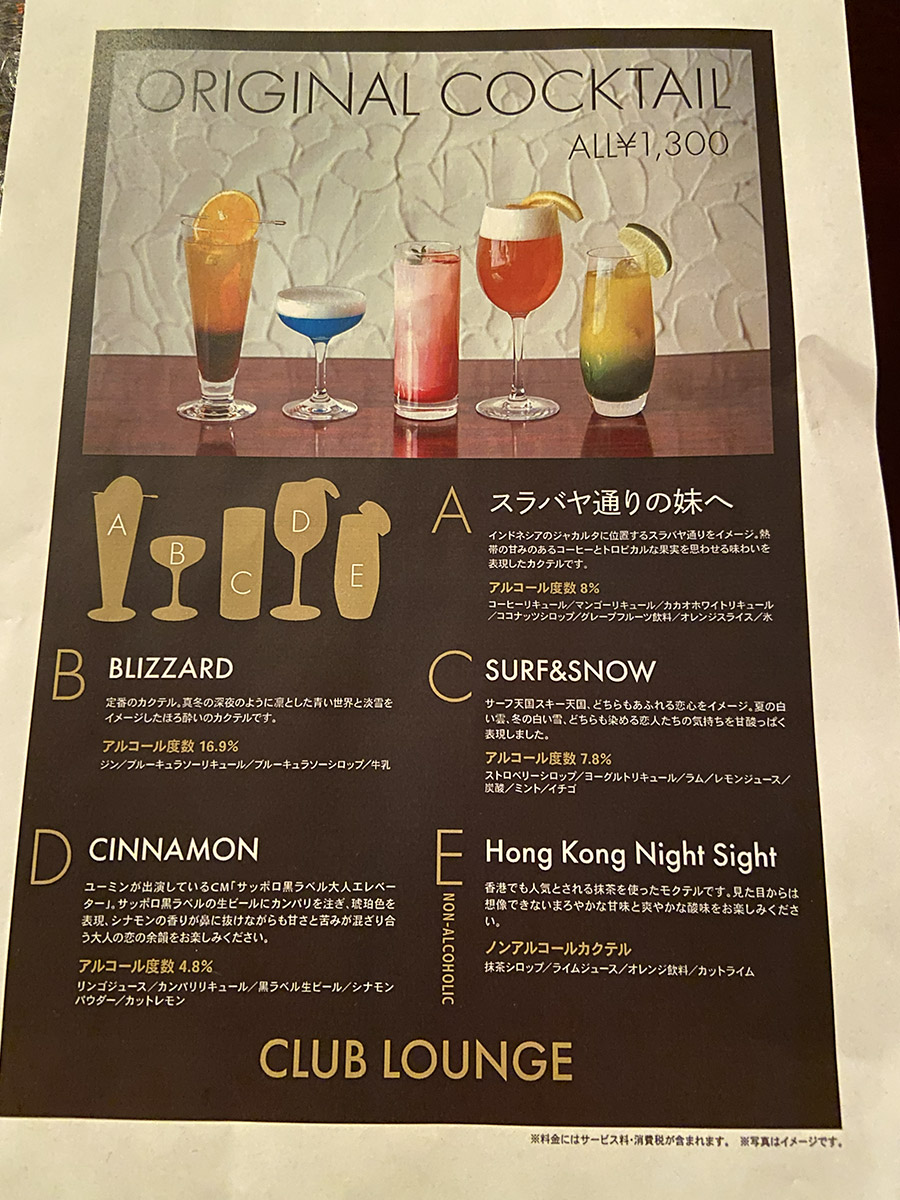 ※コンサート終演時間により時間が変更になる場合がございます。 ※メニューはオリジナルカクテル(アルコール、ノンアルコール)のみの提供となります。 ※お会計は各テーブルにてまとめてお部屋付けのみの精算となります。なお、お部屋付けしたご精算につきましては、チェックアウトの際必ずフロントにてお支払いをお願いいたします。 ※ご宿泊されないお客様は退店時キャッシャーにてお支払いください。お支払いは現金のみとなります。 クレジットカード、QR決済、交通系カードでのお支払いは出来ませんので予めご了承ください。 |