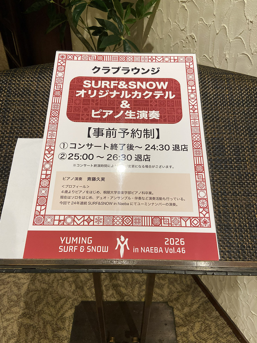 SURF&SNOW in Naeba Vol.46では、苗場プリンスホテル 「シャトレーヌ」(現クラブラウンジ)につきまして、公演日終演後のみの特別営業となります。公式サイトでの詳細な情報が発表されましたので、こちらでも掲載いたします。